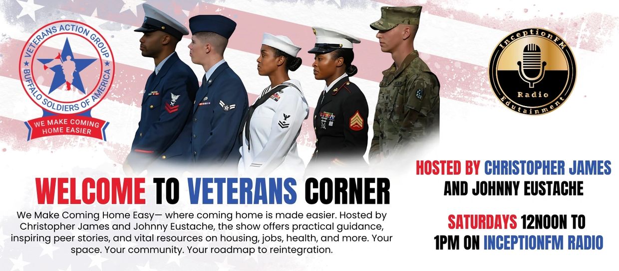 Transitioning from military service back into civilian life can feel overwhelming. At Veterans Corner, we believe no one should walk that path alone. Hosted by Christopher James and Johnny Eustache, this weekly program on InceptionFM Radio is built by veterans, for veterans, with one goal in mind: to make coming home easier.
